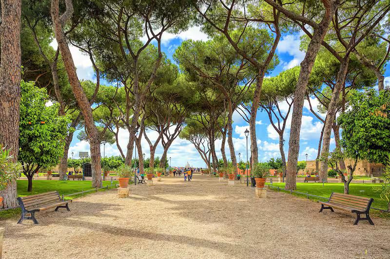 Aventinski dio grada poznat je po svojoj tišini i zelenilu, daleko od gužve centralnih turističkih lokacija. U neposrednoj blizini nalaze se vrtovi i crkve koji dodatno doprinose opuštenoj atmosferi ovog dijela Rima.